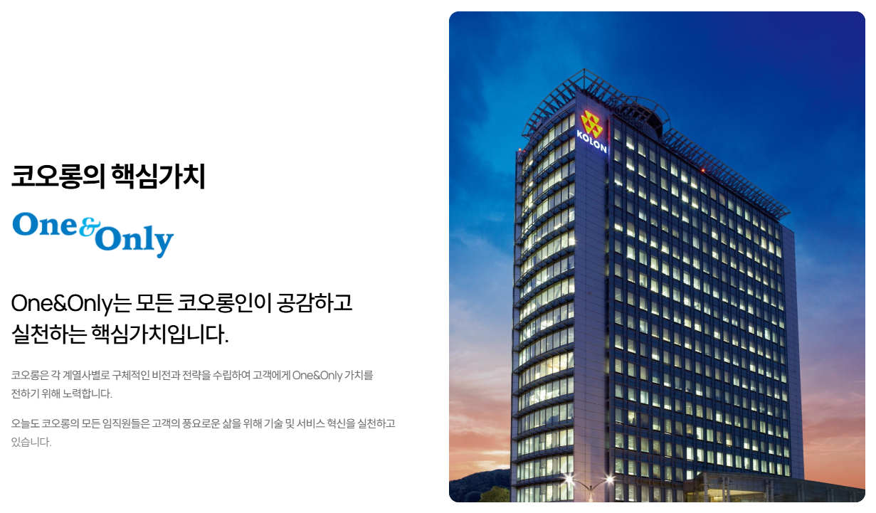 - 코오롱그룹의 핵심 가치와 본인 가치관 연결