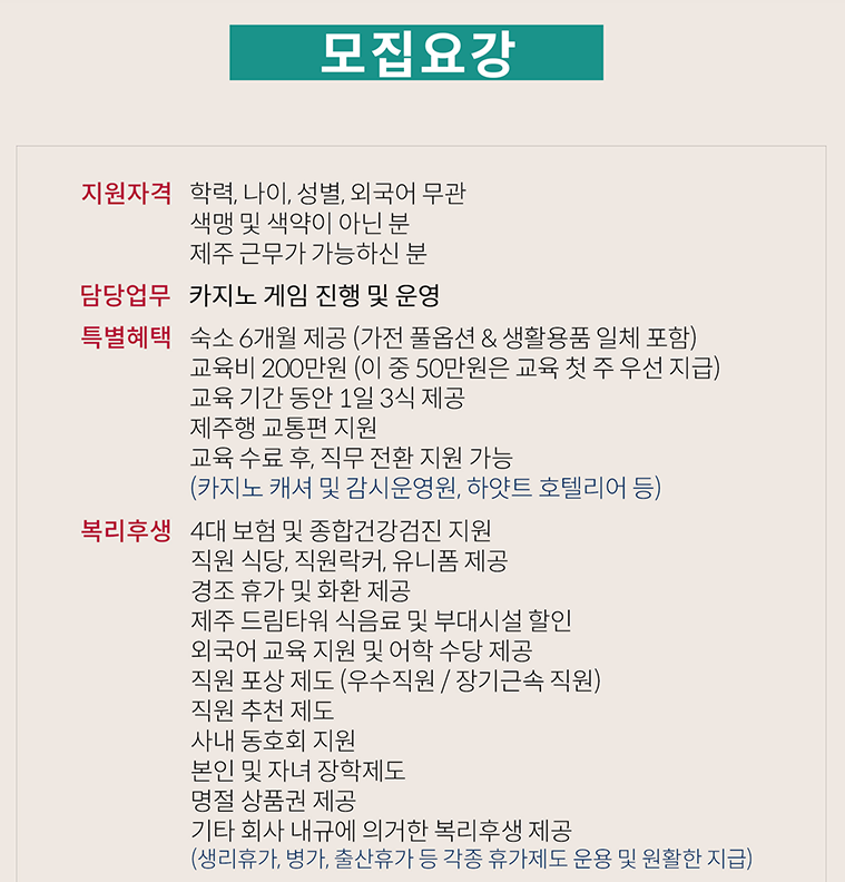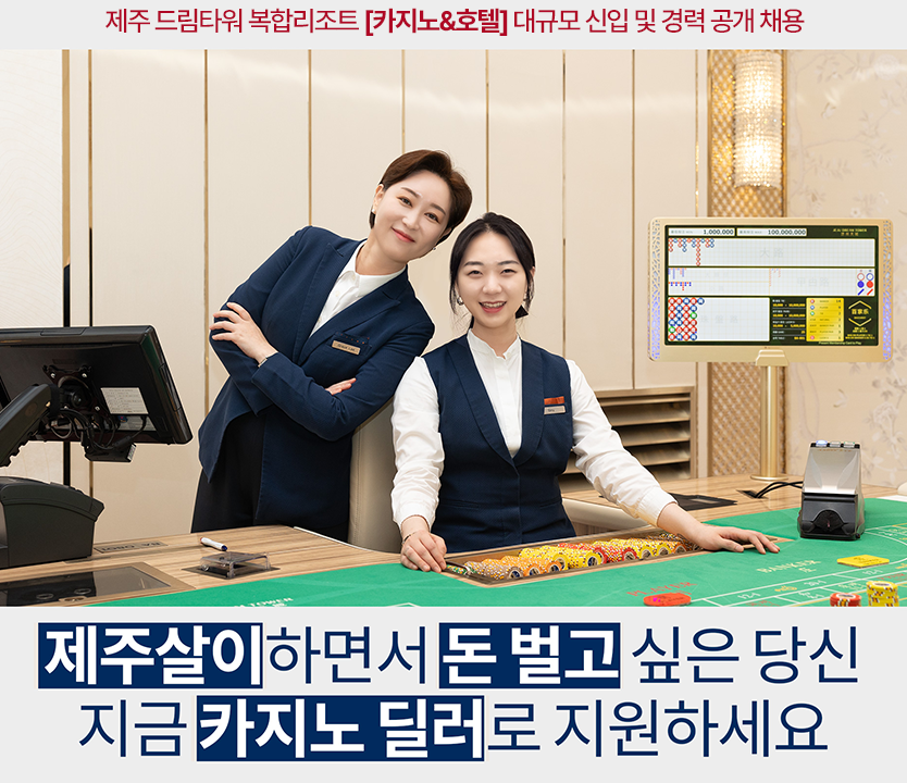 - ✅ 채용 기회: 제주 드림타워, 카지노&호텔 부문 신입/경력 대규모 공채 진행 중!