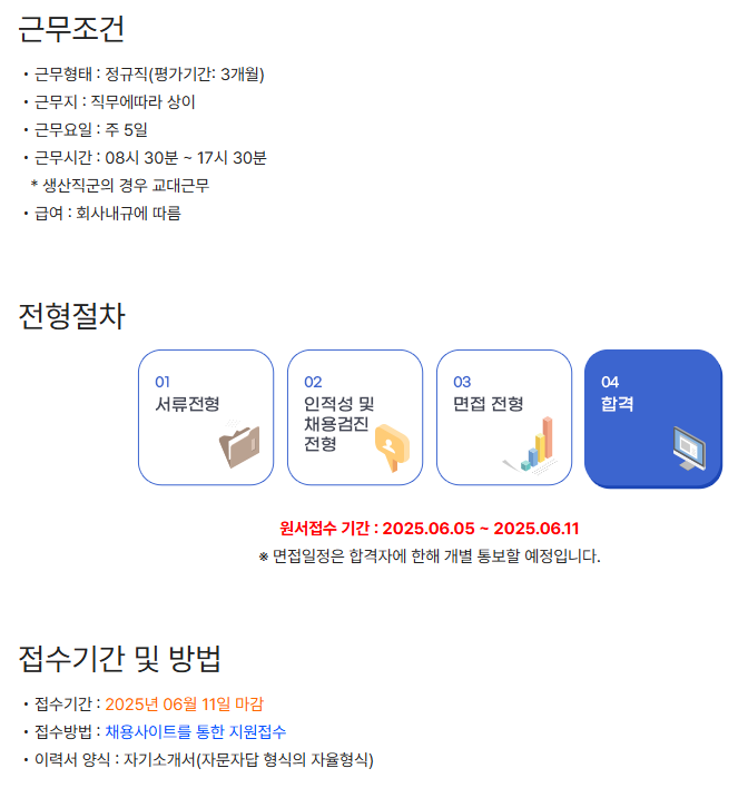 | 서류전형 | 이력서, 자기소개서 제출 |