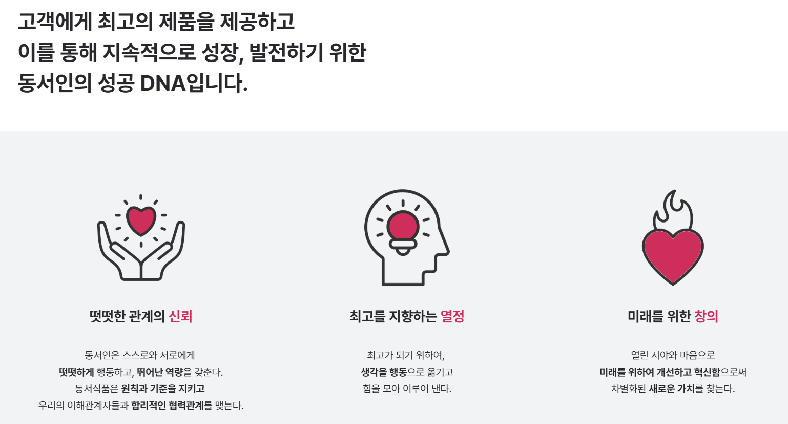(이미지: 동서식품의 핵심 가치를 보여주는 인포그래픽)