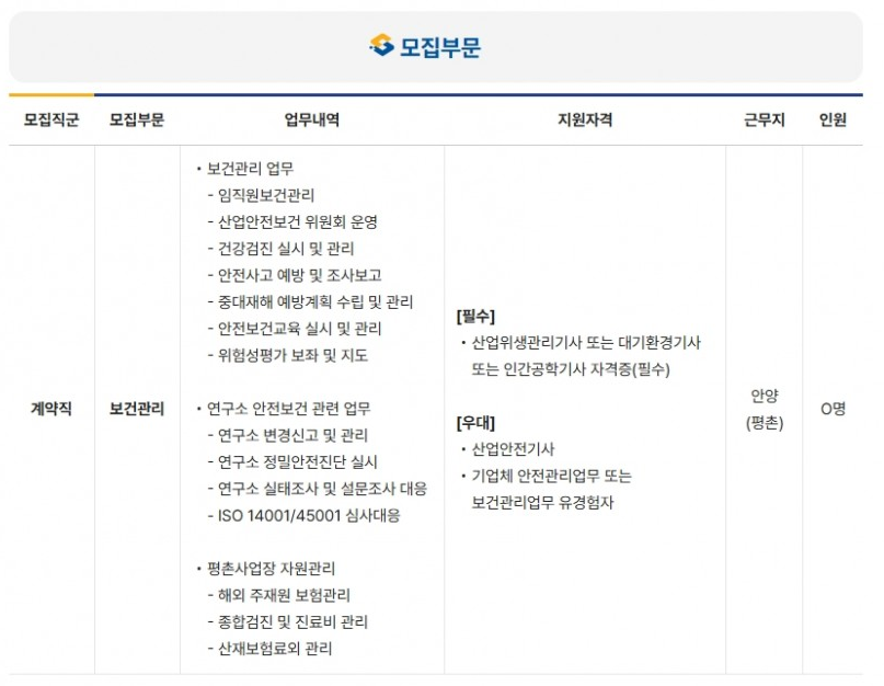 서연이화에서 보건관리 계약직 사원을 모집하고 있습니다. 접수 기간은 2025년 4월 14일(월) 09:00부터 2025년 4월 20일(일) 22:00까지입니다. 지원 자격은 대졸(4년제) 이상이며 경력은 무관(신입 포함)입니다. 근무지는 경기 안양시를 포함한 전국 사업장입니다.