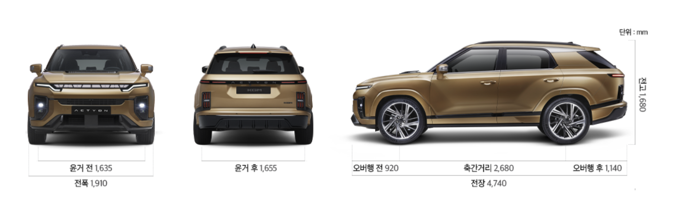 - 크기: KG 모빌리티 액티언이 가장 큰 크기를 자랑합니다.