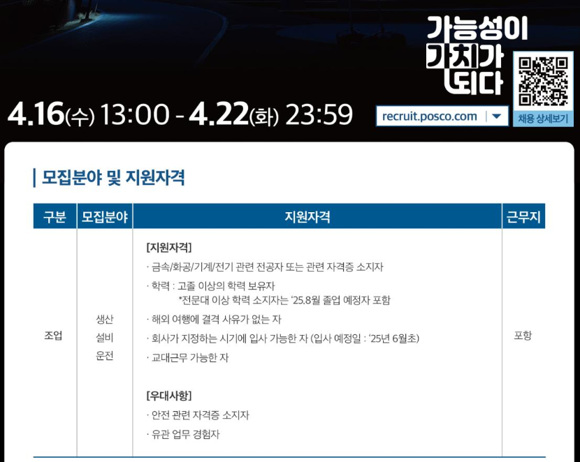 📌 2025년 상반기 포스코스틸리온 생산기술직 채용 개요