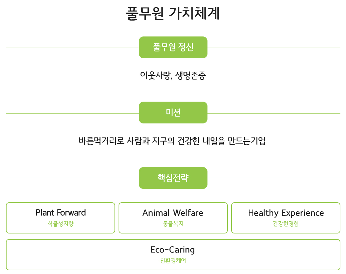 마지막 항목에서는 풀무원의 기업 철학과 비전에 대한 이해를 보여주어야 합니다: