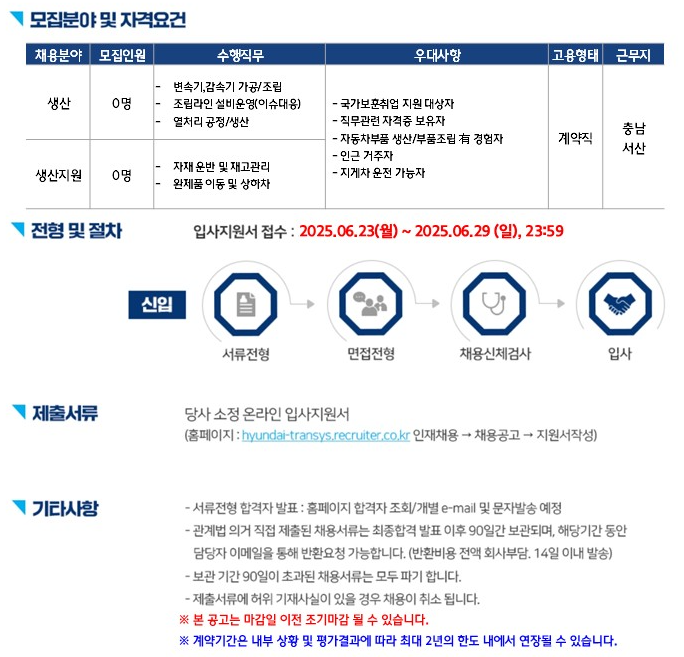 🎯현대트랜시스 생산직 채용 현황 분석