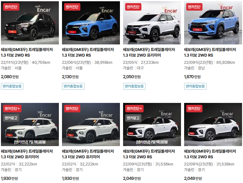 트레일블레이저는 개성 있는 디자인과 높은 연비 효율성으로 젊은 소비자들에게 인기가 높습니다. 2022년식 모델은 신차 대비 35% 이상 저렴한 가격에 구매할 수 있어 가성비가 좋습니다. 다만, 실내 공간이 다소 협소하고 고속 주행 시 소음이 발생하는 점은 단점으로 지적됩니다.