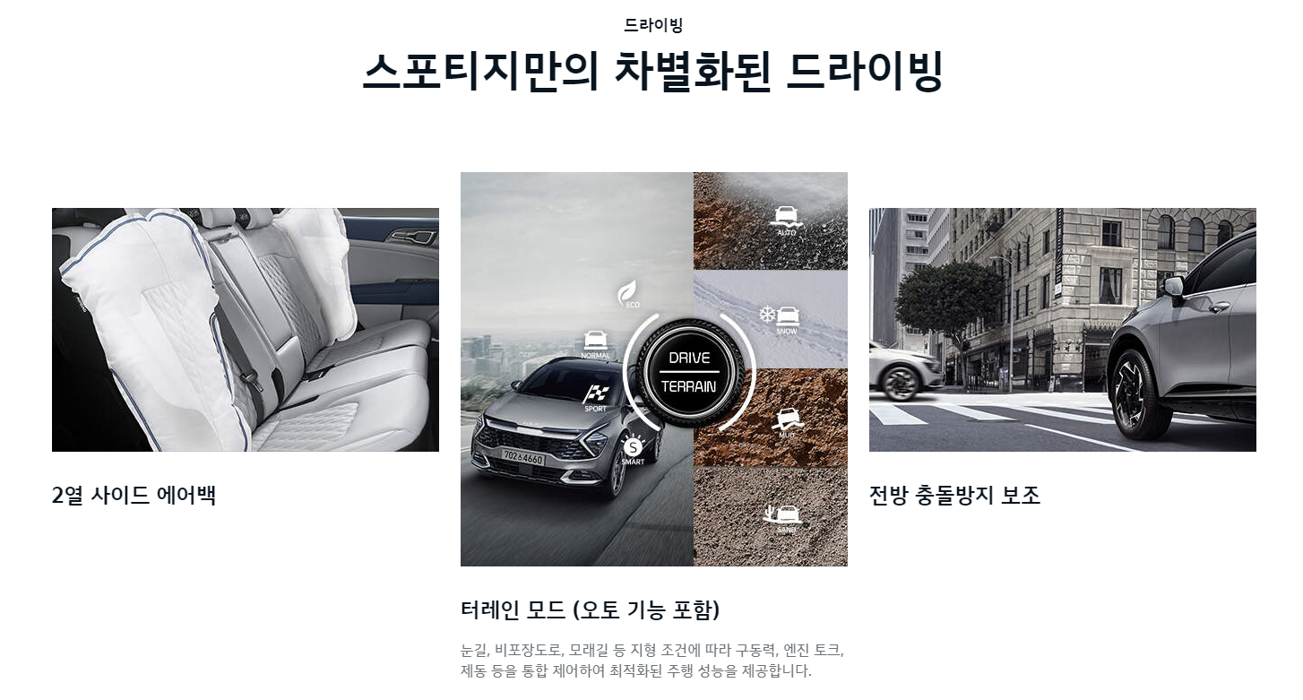 공간 면에서도 스포티지는 여전히 넉넉한 적재 공간을 자랑합니다. 트렁크 공간은 넓고 뒷좌석을 접으면 더 많은 짐을 실을 수 있어 패밀리카로서도 적합합니다. 하이브리드 모델 역시 배터리 공간을 효율적으로 배치해 내연기관 모델과 큰 차이 없이 적재 공간을 제공합니다.