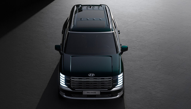 디 올 뉴 팰리세이드는 '강인함과 고급스러움'을 목표로 디자인되었습니다. 전면부에는 수직형 주간주행등(DRL)과 대담한 라디에이터 그릴이 적용되어 강렬한 첫인상을 줍니다.