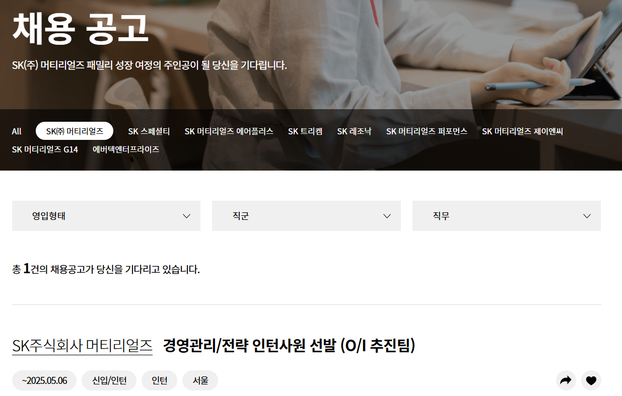 SK머티리얼즈는 반도체 및 디스플레이 소재 전문기업으로, 최근 SK㈜ 머티리얼즈 계열사로 통합되어 운영되고 있습니다. 2025년 현재 SK머티리얼즈는 다양한 직무에서 인재를 모집하고 있어요. 특히 생산기술 엔지니어, 품질, 경영관리, 영업 등 여러 분야에서 채용이 이루어지고 있습니다. 🏢